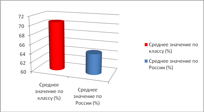 В 2011 – 2012 учебном году учащиеся 4-го класса участвовали в платном конкурсе «Кенгуру выпускникам начальной школы» (Организаторы мониторинга: ИНСТИТУТ ПРОДУКТИВНОГО ОБУЧЕНИЯ РОССИЙСКОЙ АКАДЕМИИ ОБРАЗОВАНИЯ ЦЕНТР ТЕХНОЛОГИИ ТЕСТИРОВАНИЯ «КЕНГУРУ ПЛЮС Санкт-Петербург) Мониторинг проводился в 7789 школах из 78 регионов России. Всего в нем приняло участие 206053 ученика. Результаты мониторинга математической подготовки учащихся 4 класса на 6 % выше среднего результата по России и выглядят на диаграмме следующим образом.